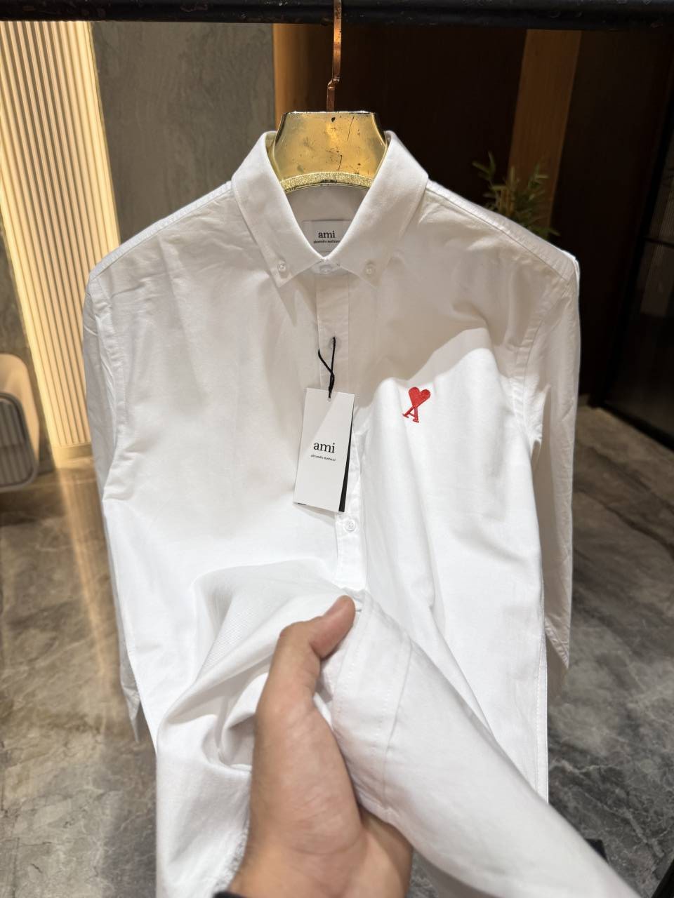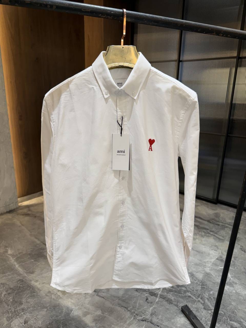 AMI PARIS WHITE PREMIUM RED LOGO EMBROIDERED STORE ARTICLE SHIRT