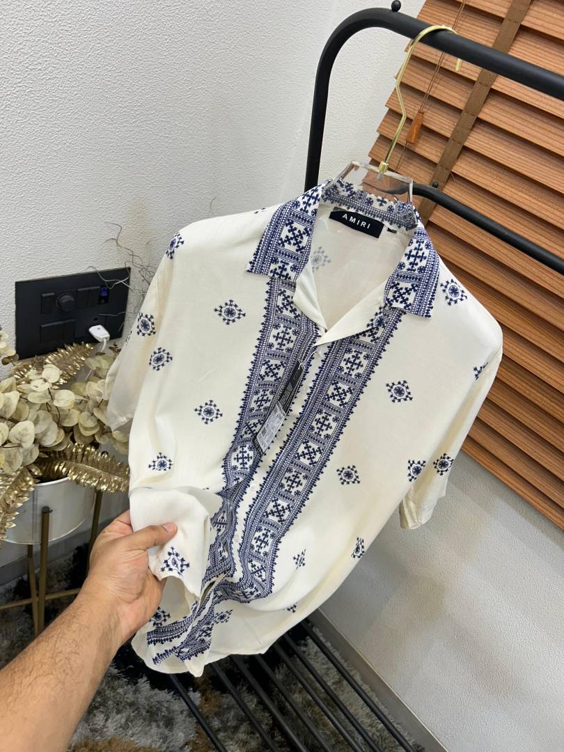 Amir_i Ajrakh Printed Turkey Imported Very Premium Linen Half Shirt (DN 519)
