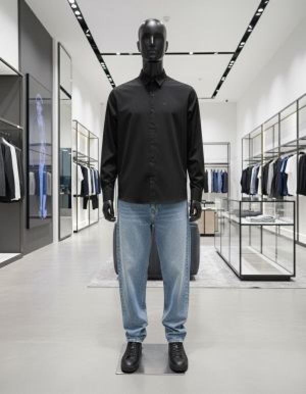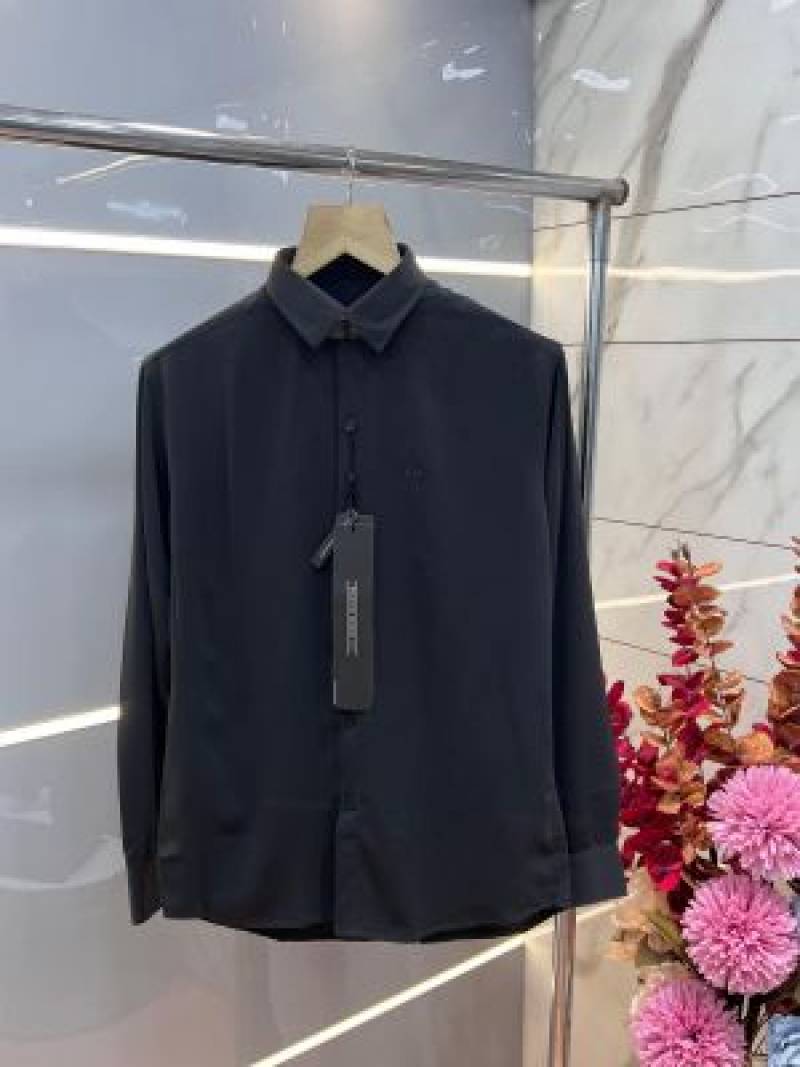 Balmai n Paris Black Premium Imported Cotton Lycra Fabric Metal Logo Shirt with Brand Box and Carry Bag 3812