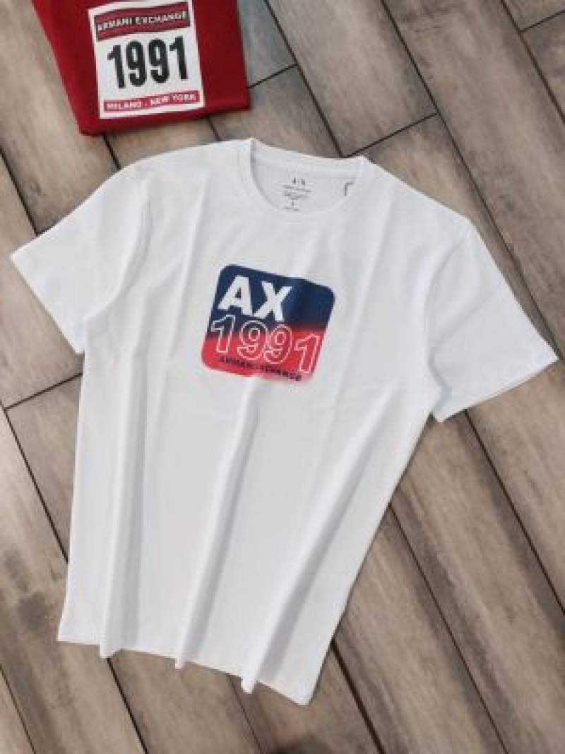 Arman i Exchange White Premium Imported 240 GSM Interlock Fabric Round Neck Printed Logo Tshirt 3322