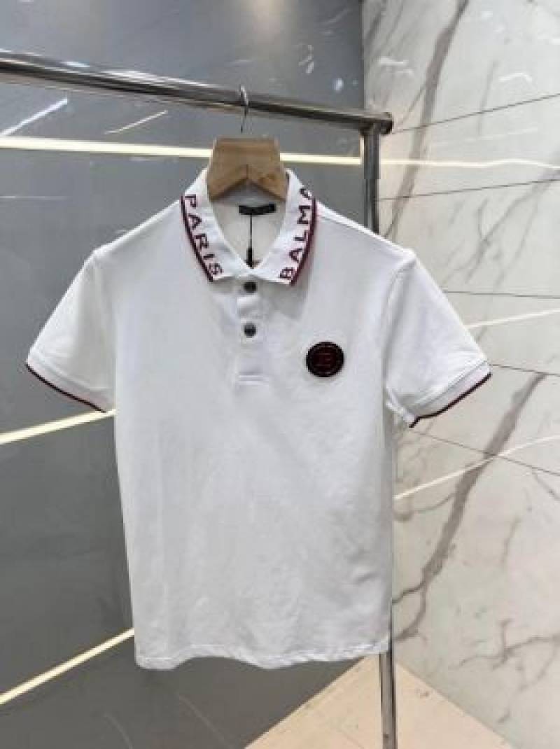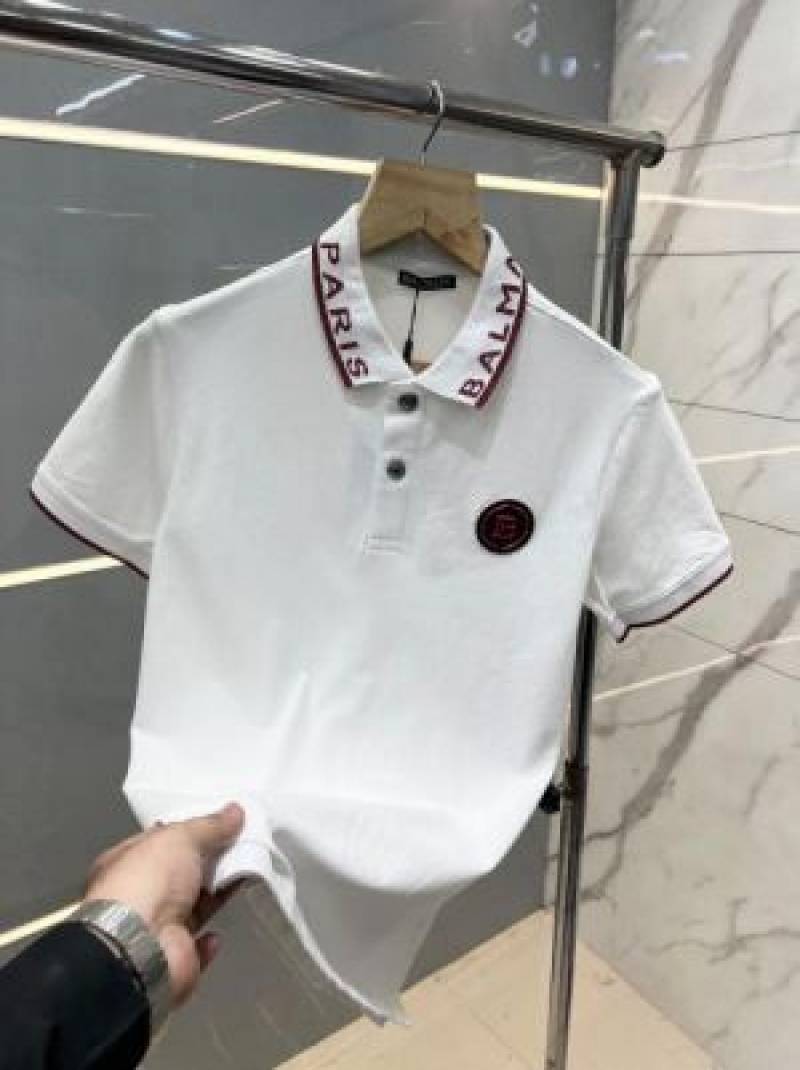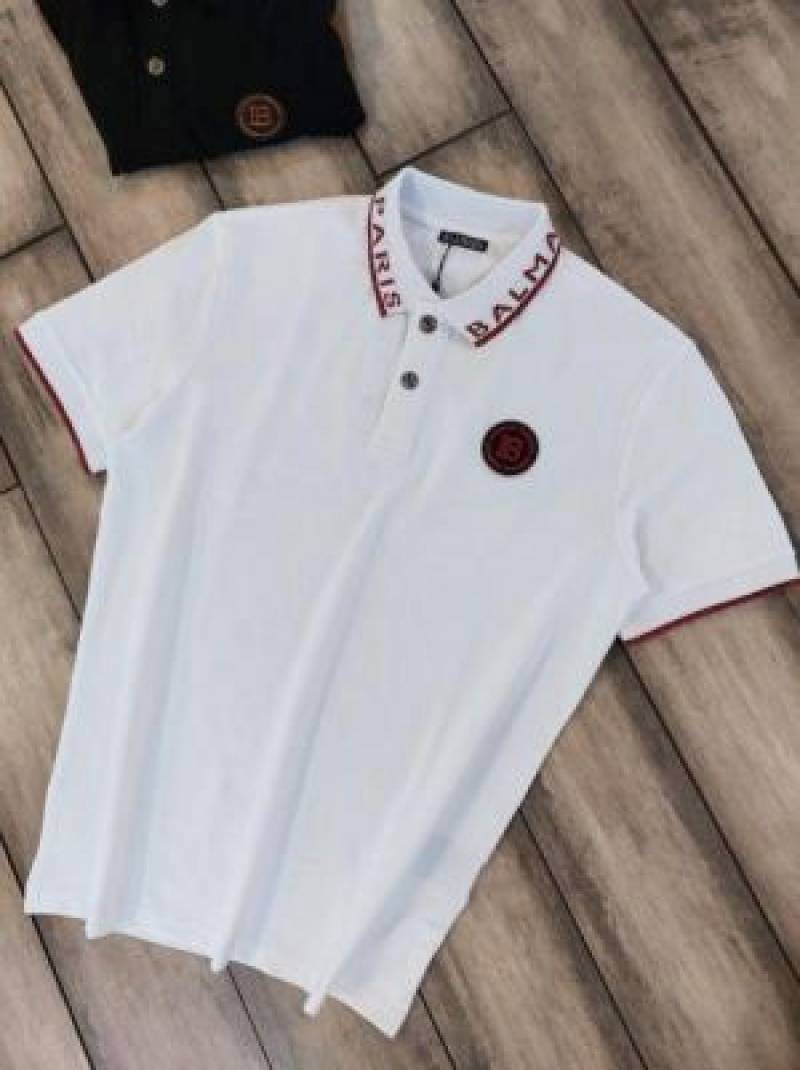 Balmai n Paris White Premium Imported Pique Polo Tshirt with Collar Design And Rubber Metal Logo 2716