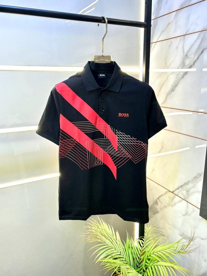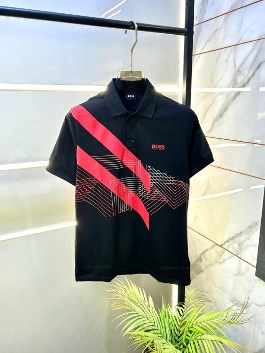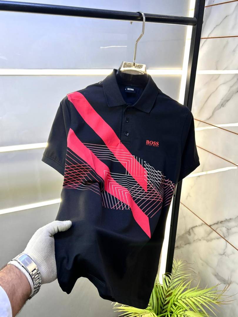 Boss Black Collar Neck Back Print Premium Polo T-shirt F3137-B1