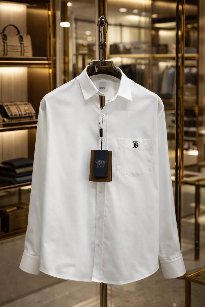 Burberr y White Premium Embroidered Logo Shirt With custom Branded Button Tagging And Brand Packing 3751