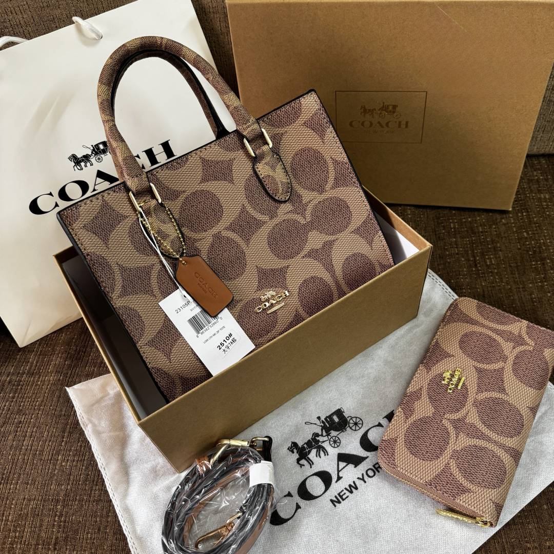 • COAC.H MAGGIE TOTE SIGNATURE CANVAS WITH EXTRA WALLET PREMIUM WITH OG BOX