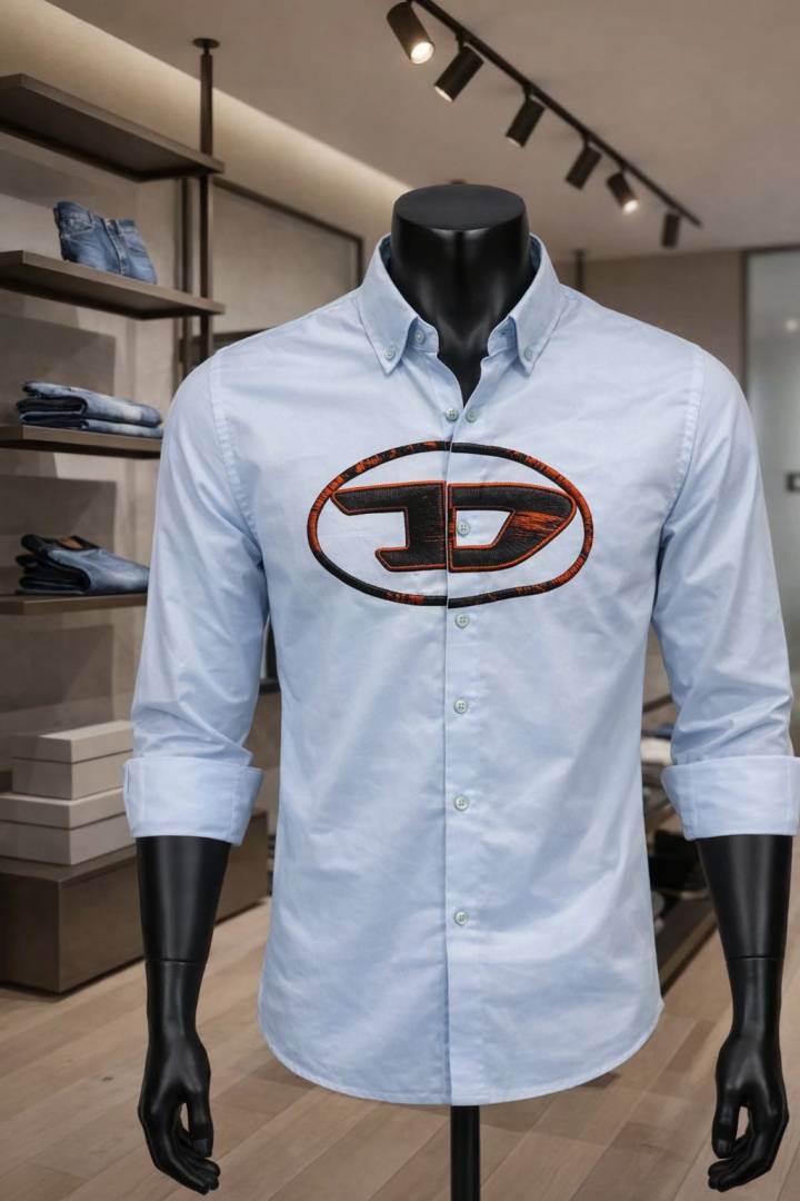 Diese_l Middle Brand Logo Full Sleeves Shirt Sky Blue