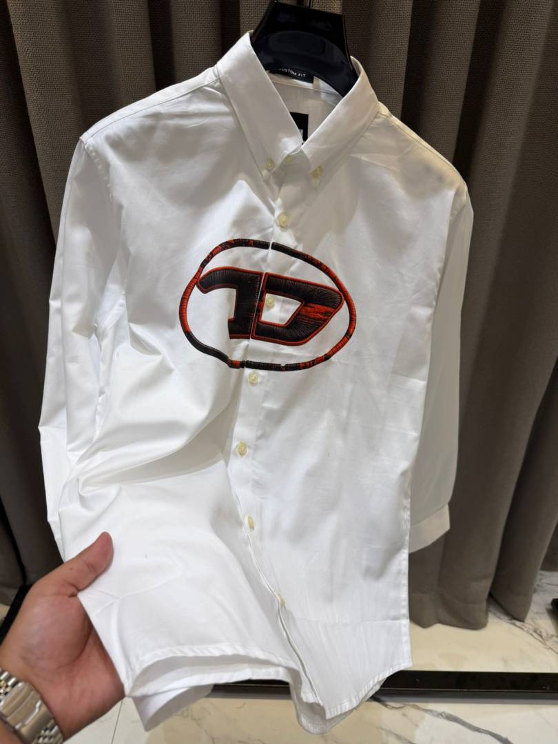 Diese_l Middle Brand Logo Full Sleeves Shirt White
