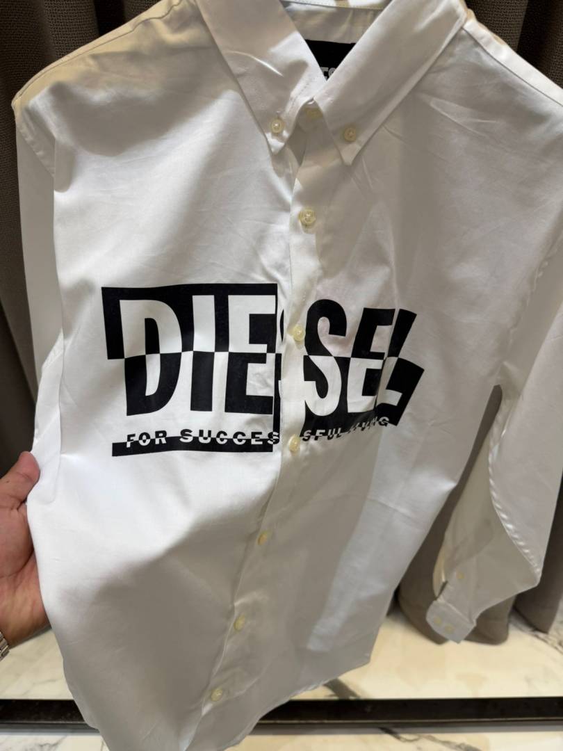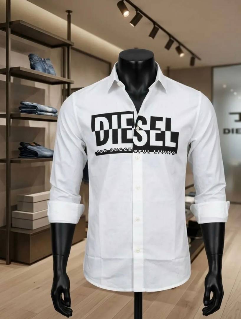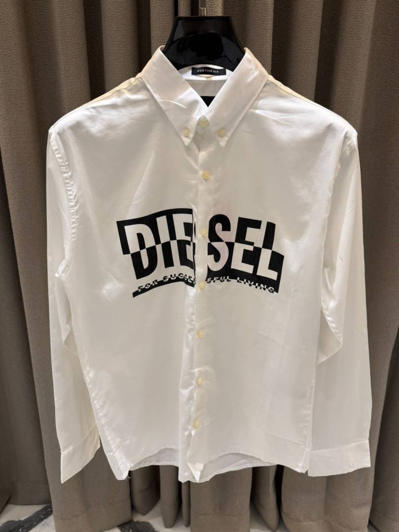 Diese_l Middle Brand Print Full Sleeves Shirt White