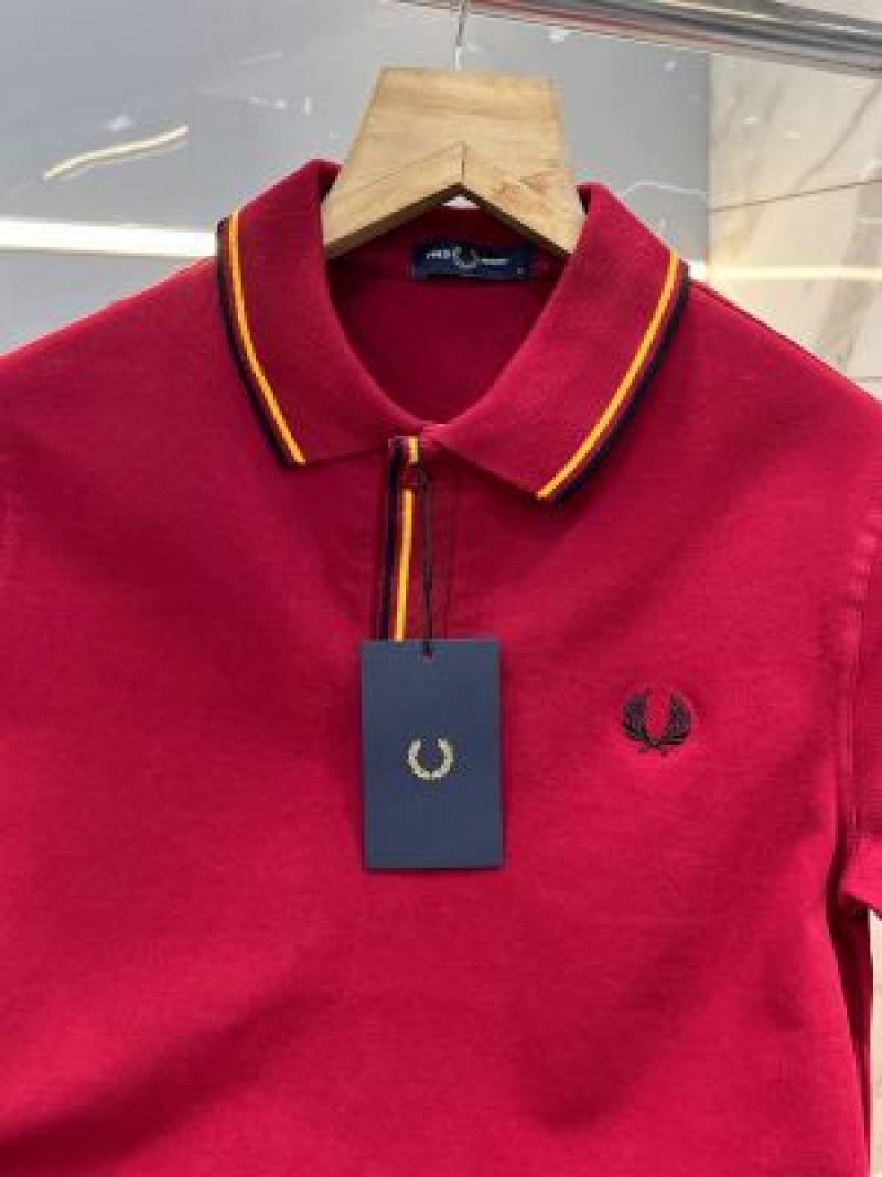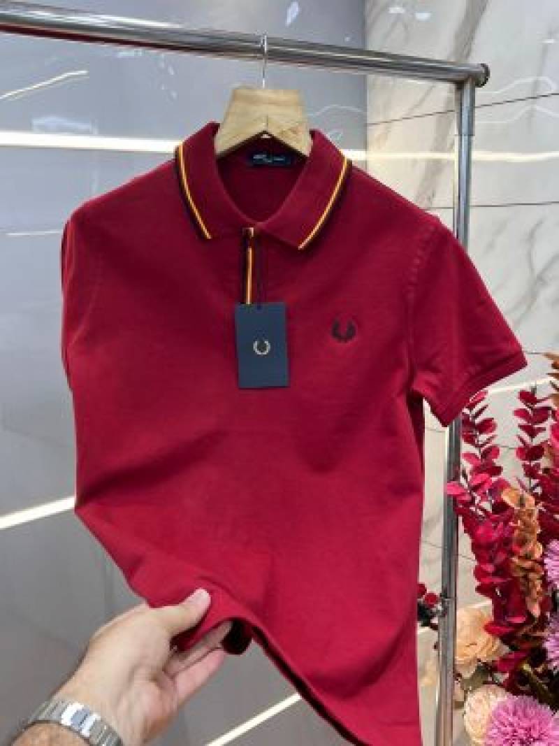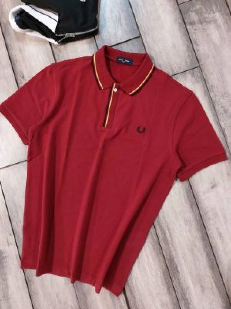 Fred Perr y Maroon Premium Cotton Lycra Pique fabric Polo Tshirt with Collar Design and Embroidered Logo 3383