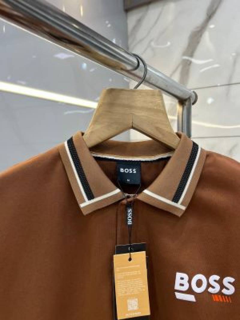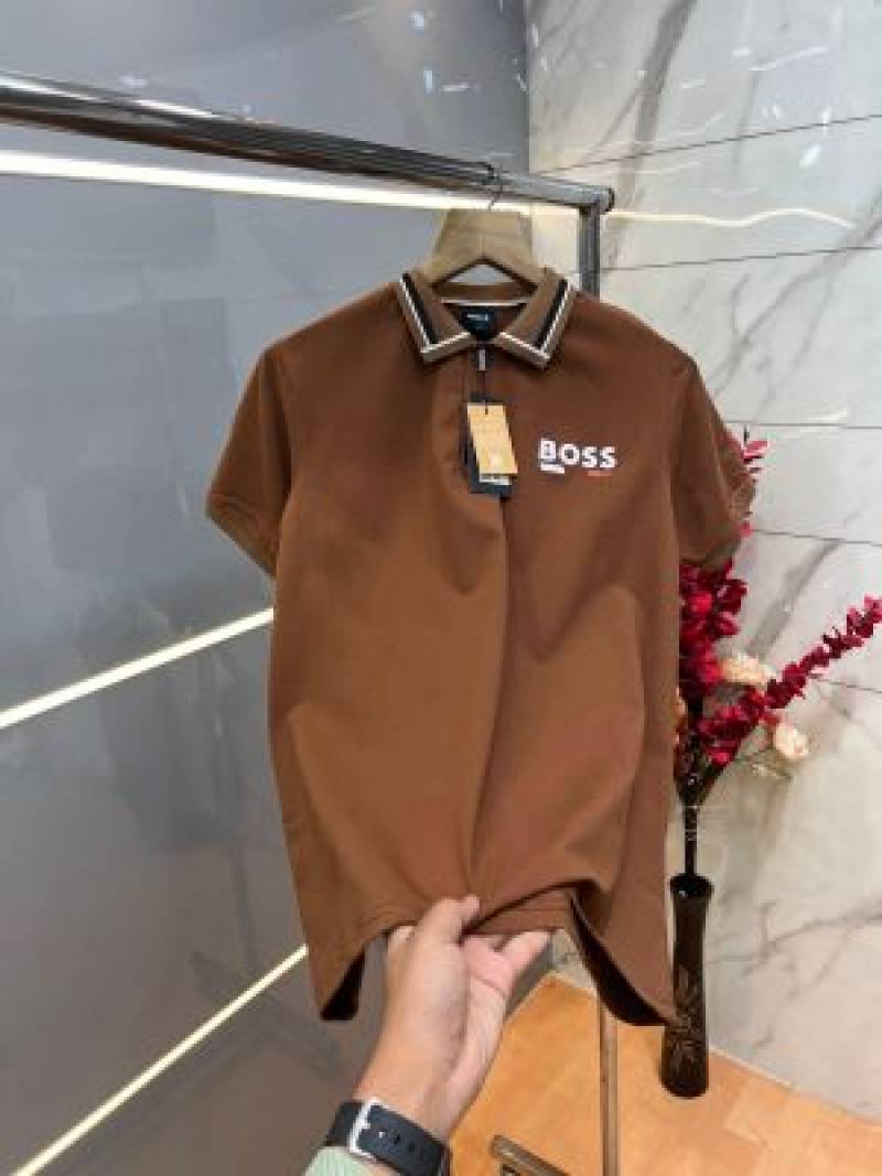 Hugo Bos s Premium Imported 240 GSM Interlock Lycra Fabric Polo Tshirt with Collar Design and Emboss Logo 3998