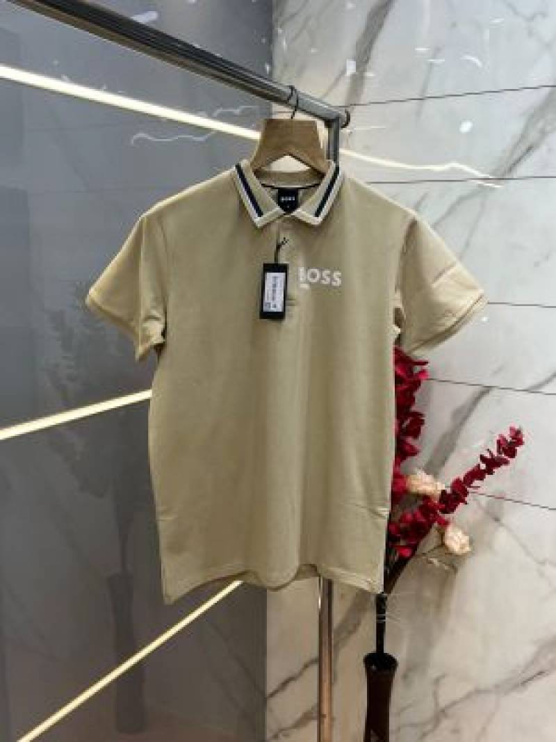 Hugo Bos s Premium Imported 240 GSM Interlock Lycra Fabric Polo Tshirt with Collar Design and Emboss Logo 3998