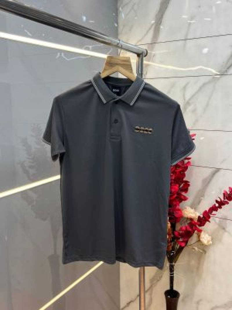 Hugo Bos s Premium Imported 240 GSM Interlock Lycra Fabric Polo Tshirt with Collar Design and Emboss Logo 3998