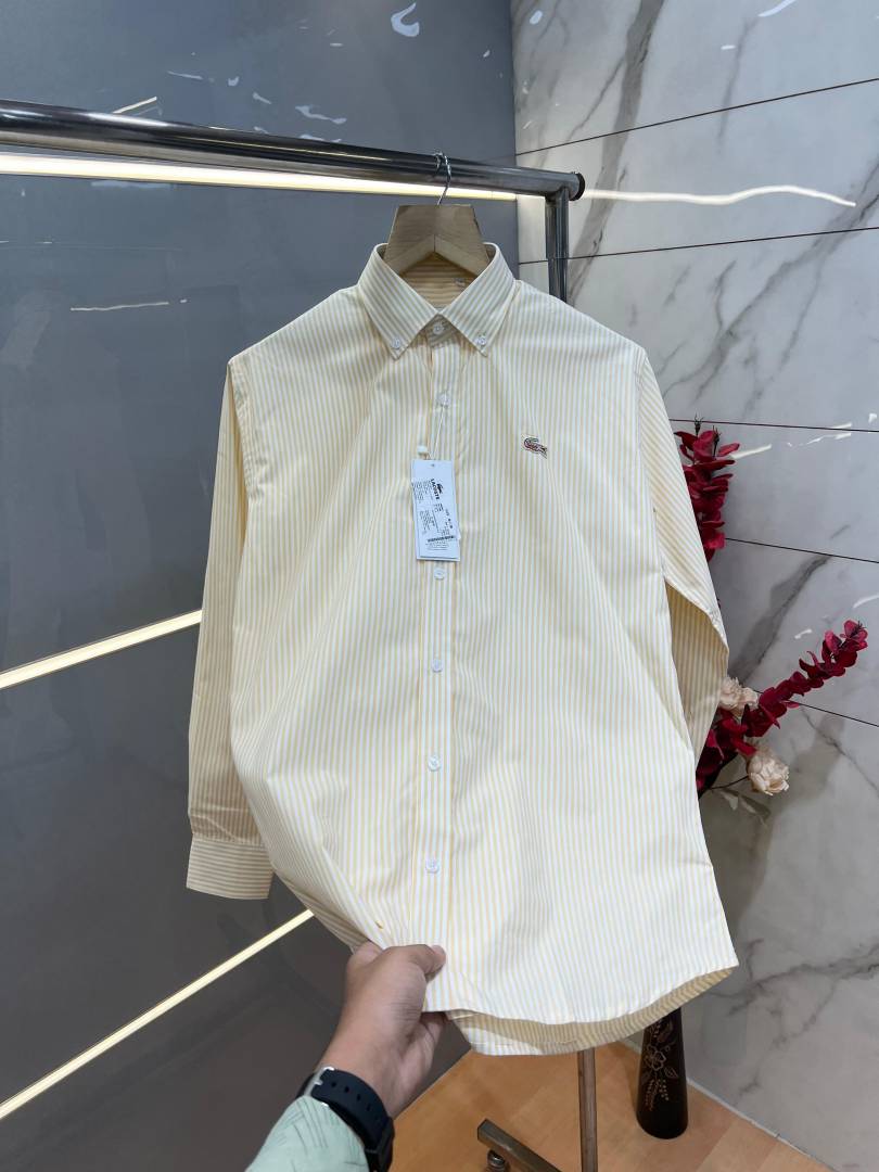 Lacost e Yellow Premium Shirt 100% 2ply Cotton Peach Finish Fabric With custom Branded Button Tagging And Brand Poly Bag 4040