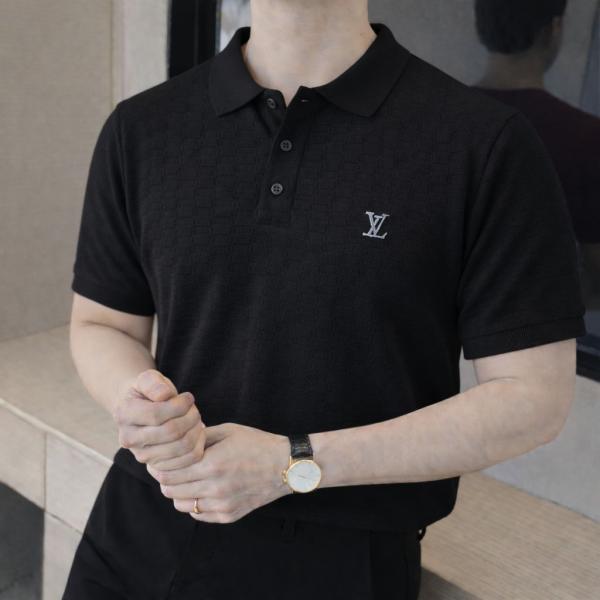 Louis_Vuitton Imported knitted Super Premium Black Collar Neck Polo T-shirt F3467-BL