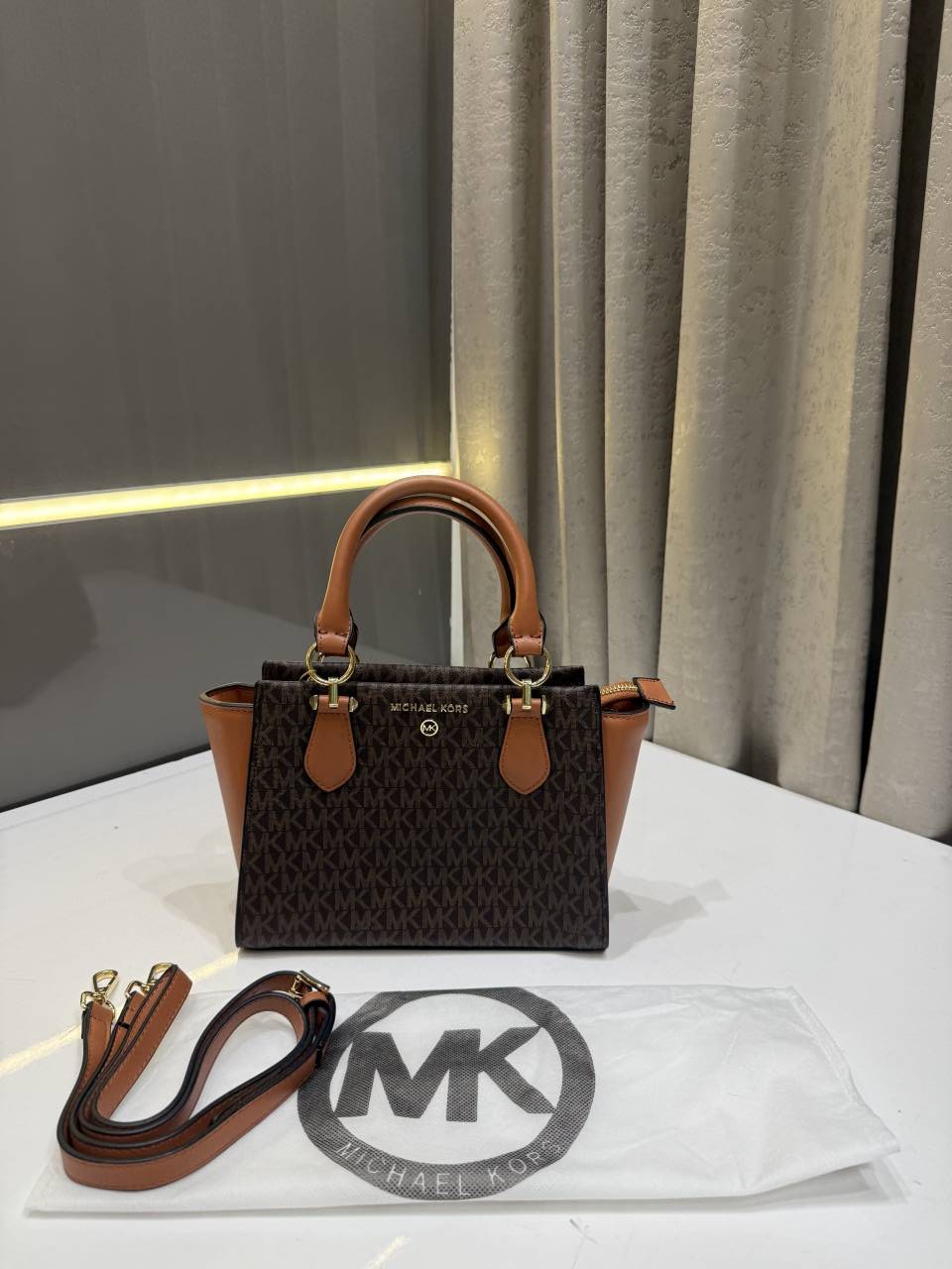 • MICHAE.L KORS BROWN MARILYN MEDIUM SATCHEL PREMIUM HANDBAG WITH DUST