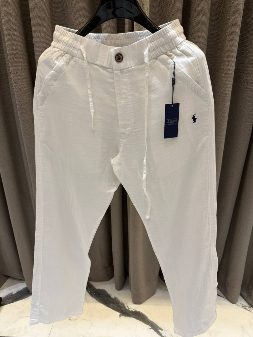 Ralp_h lauren imported logo Linen treak pants white