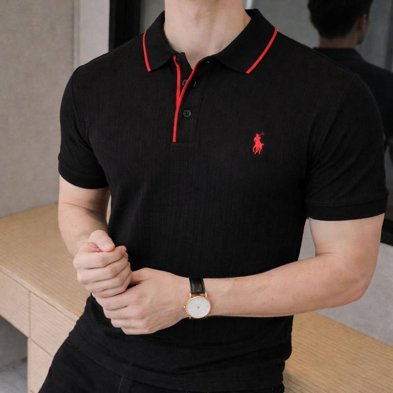 Ralp h Lauren Polo Imported knitted Black Super Premium Collar Neck T-shirt F3556-BL