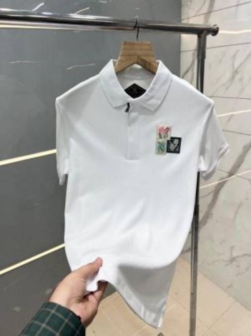 Emporio Arman i White Premium Polo With Embroidery Logo 240 GSM Interlock Cotton Lycra Fabric 1069
