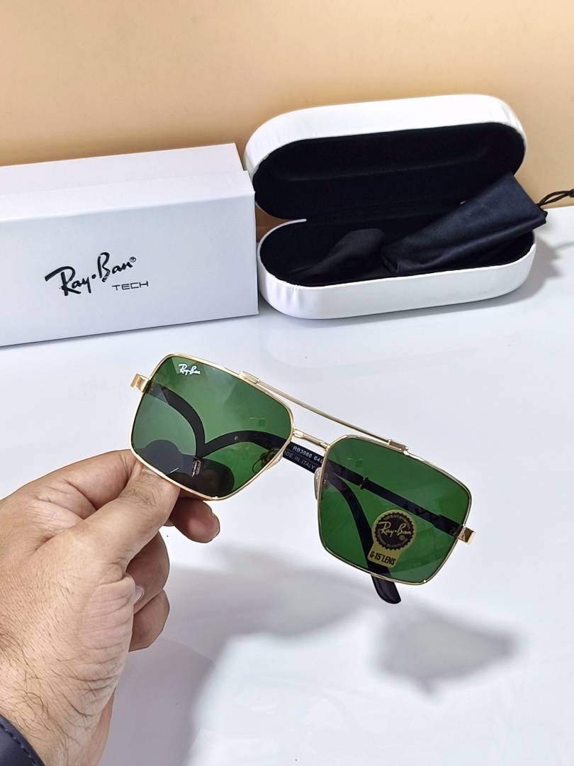• RAYBAN 3986 OFFICIAL STORE ARTICLE GOLD METAL WITH GREEN GLASS UV PROTECTION 135