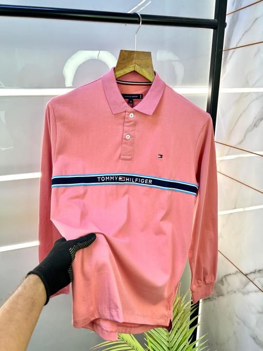 Tommy_Hilfiger Full Sleeves Pink Polo Neck Premium Collar T-shirt PINK-M-F2017