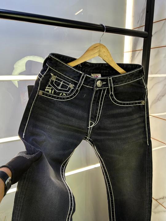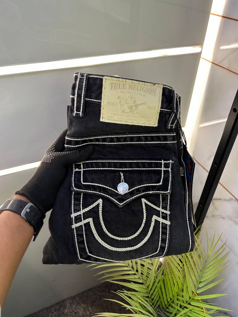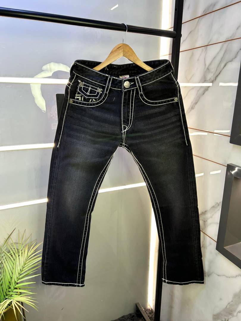 True Religion Black Straight Fit Premium Imported Fabric Denim with Back Flap pockets and Embroidered work 3774