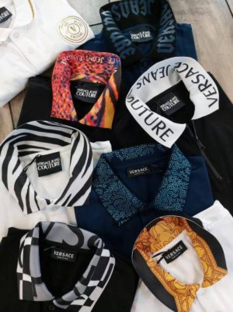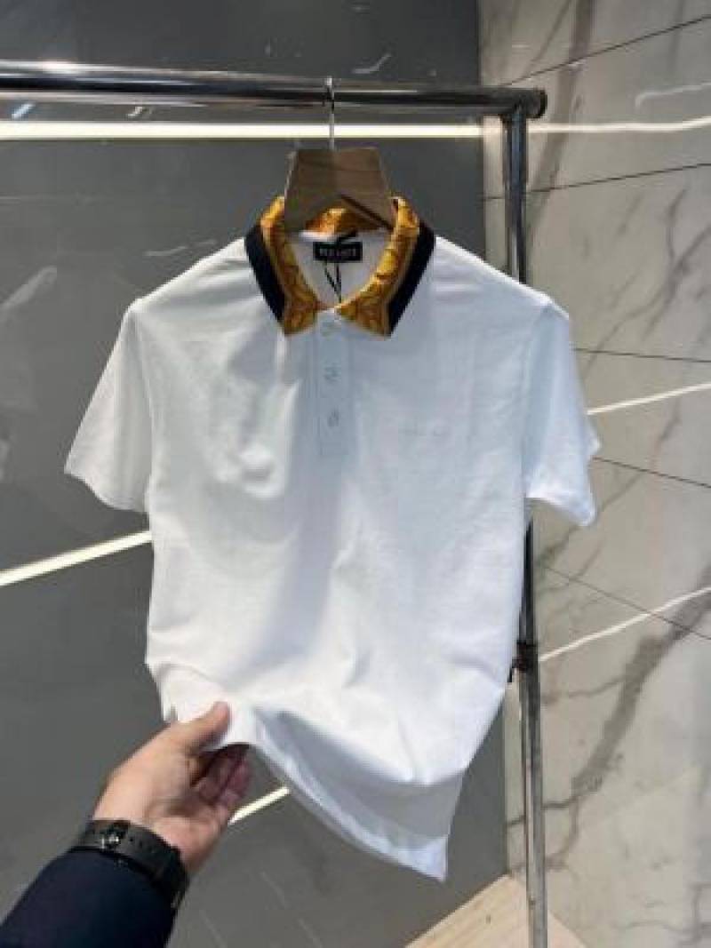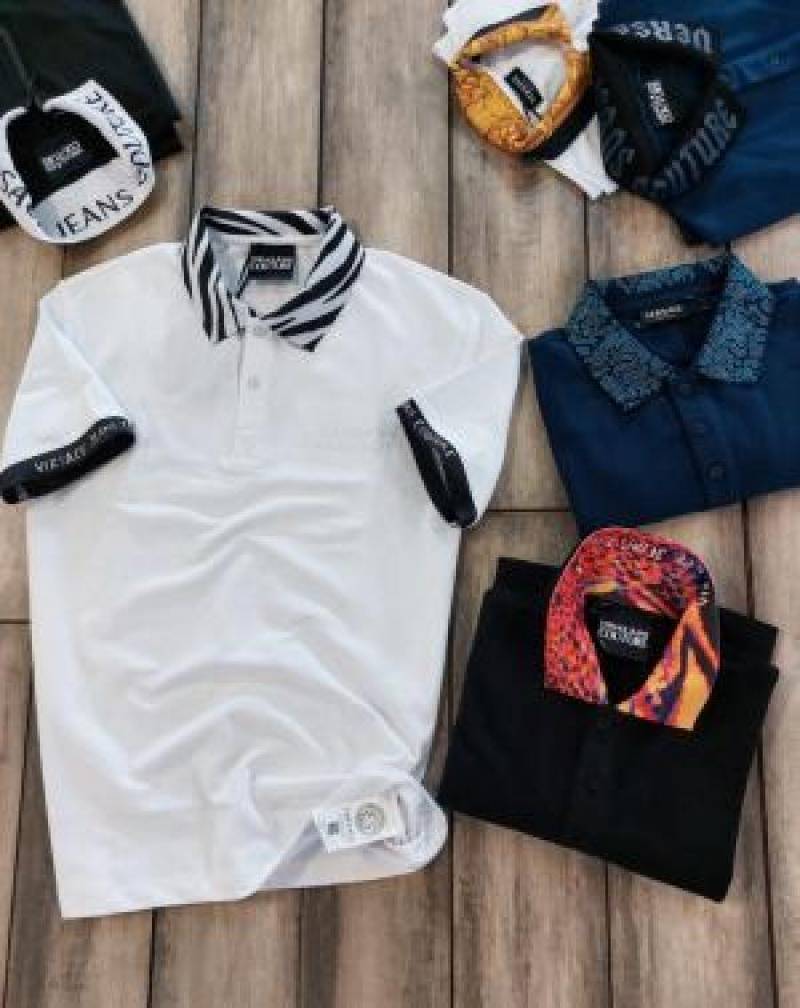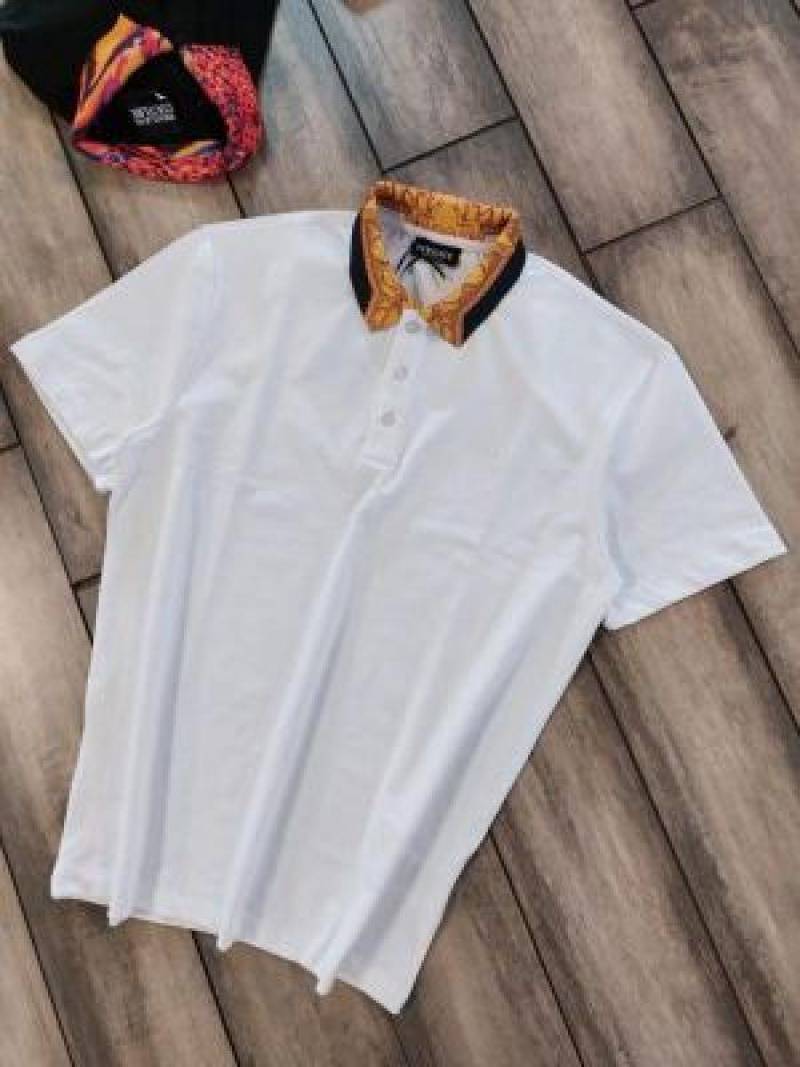 Versace White Premium Cotton Lycra Pique fabric Polo Tshirt with Collar Design and Emboss Logo 2888